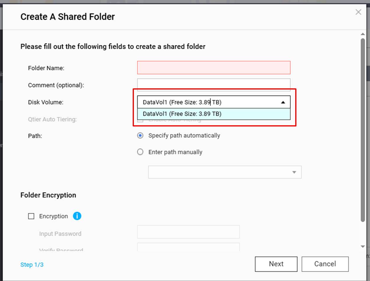 So I looked at creating a shared folder , but this would only use the remaining 3TB of disc space and not point towards the main part of the disc where the data is