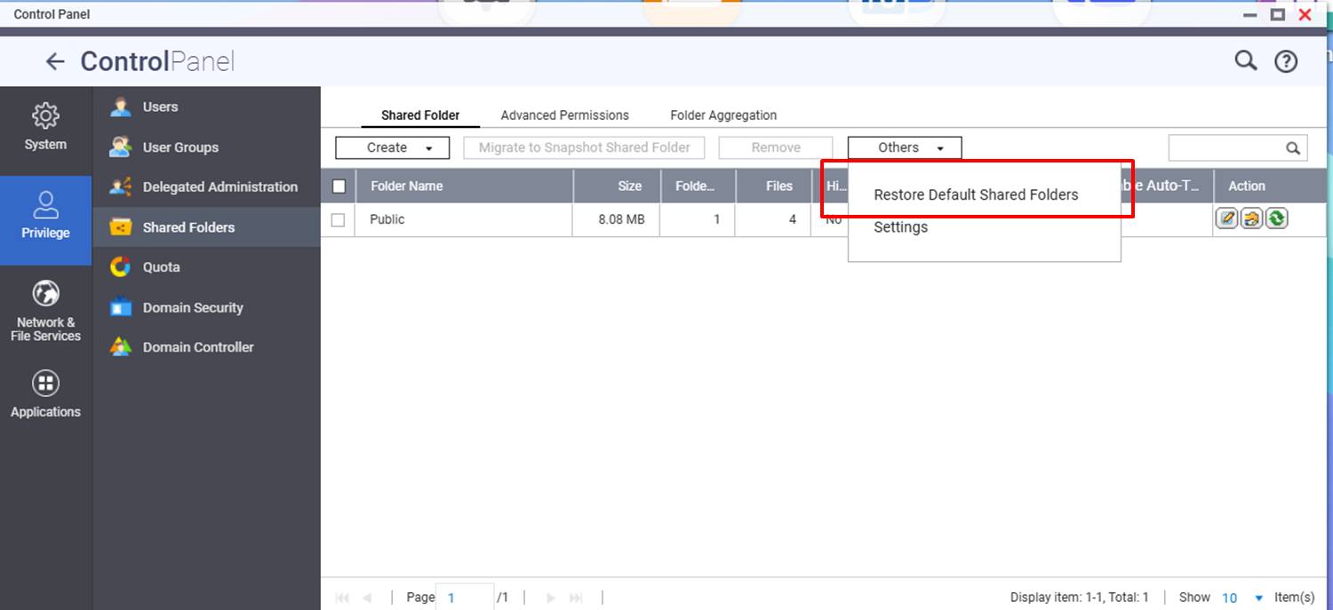 Restore shared folder 1